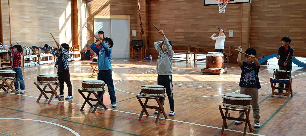 今回訪問させていただいた「萩尾太鼓」のメンバーは、小学1年生から6年生までの10名。全校生徒が10名ですので全員がメンバーです。少人数のチームですが、彼らの和太鼓にかける情熱と創造性には心から感動しました。