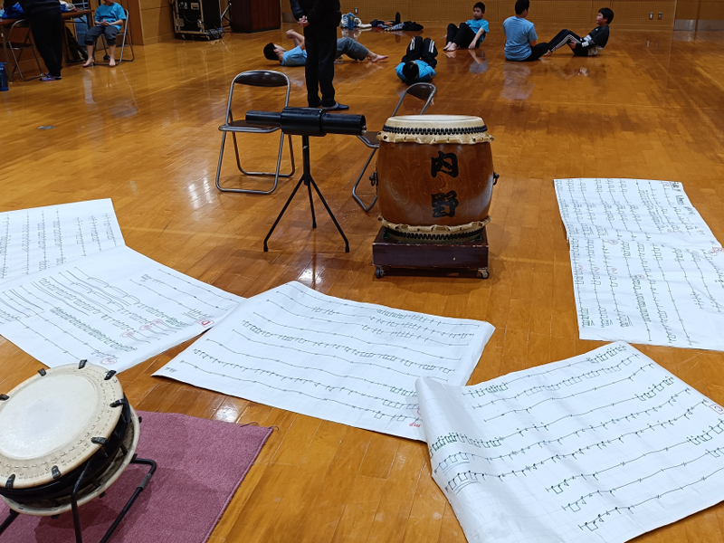 特に基本の打ち方の動作を重点に意識させ、併せて音楽的なリズムの強弱を体で感じ取らせようとする練習メニューが組まれており、音成先生の論理的で丁寧な指導法がうかがえました。