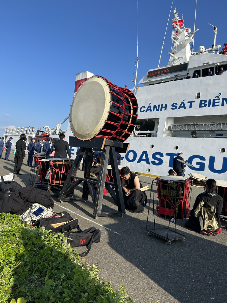 先日、第七管区海上保安本部からのご依頼を受け、弊社が太鼓チームを派遣し、ベトナム巡視船の入港と出港の際に歓迎の和太鼓演奏をさせていただきました。