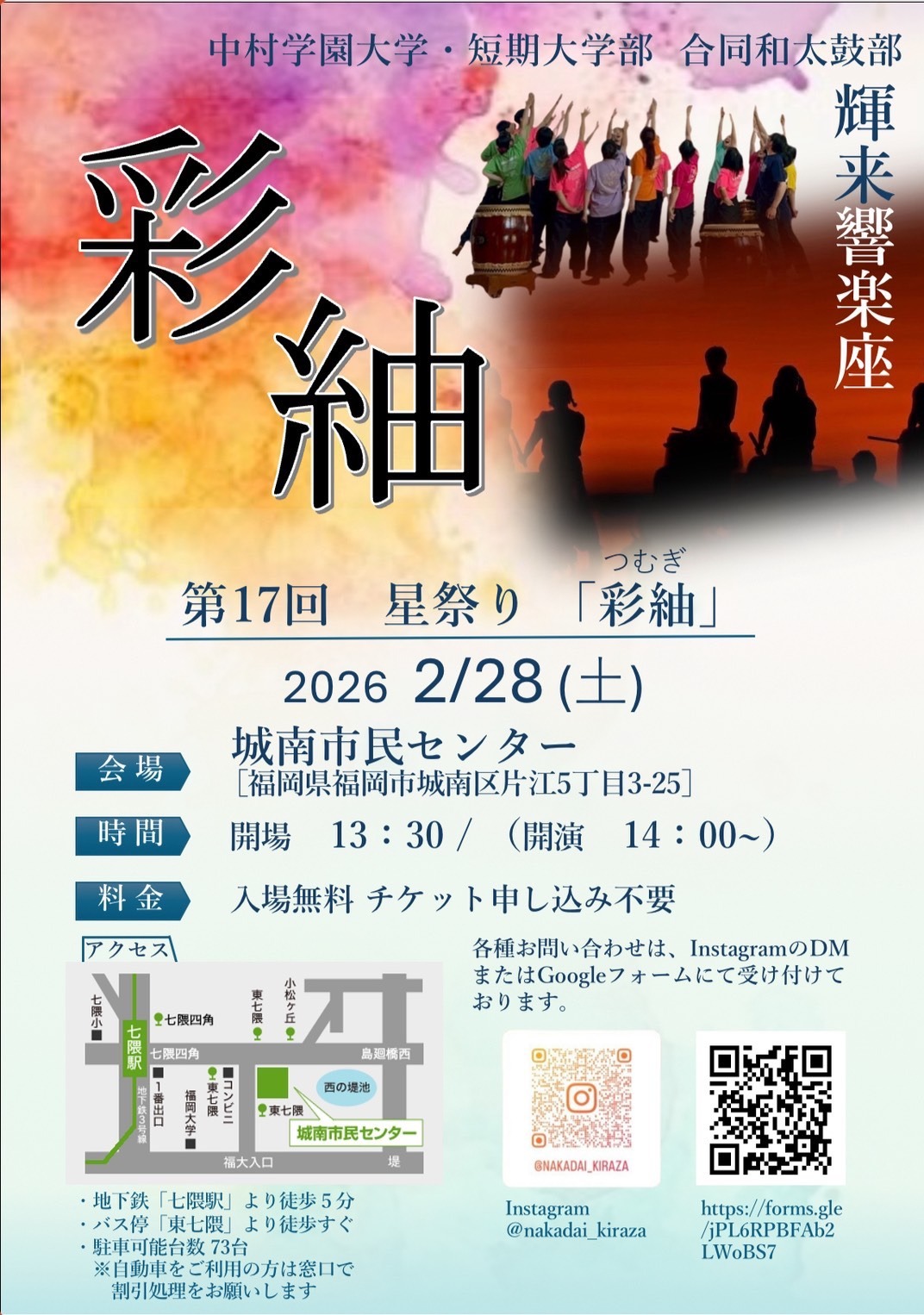 【2026年2月28日】中村学園大学和太鼓部 輝来響楽座 自主公演のご案内