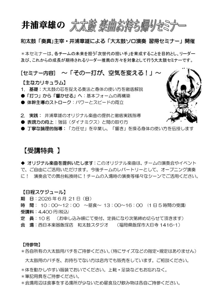 井浦章雄の大太鼓 楽曲お持ち帰りセミナー
