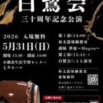 2026年3月14日 / 最終更新日時 : 2026年3月14日 turtle お知らせ 【2026年5月31日】おごおり七夕太鼓 白鷺会 三十周年記念公演 のお知らせ 【イベント紹介】おごおり七夕太鼓「白鷺会」三十周年記念公演が開催されます!小郡市を拠点に活動されているおごおり七夕太鼓「白鷺会」様が、今年で創立30周年を迎えられます。この大きな節目を記念し、来る5月31日(日)に「三十 […]