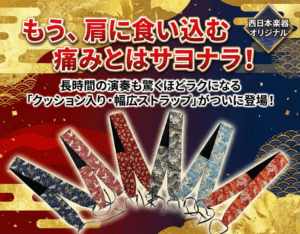 2. 痛くない!「かつぎ桶ストラップ」西日本楽器